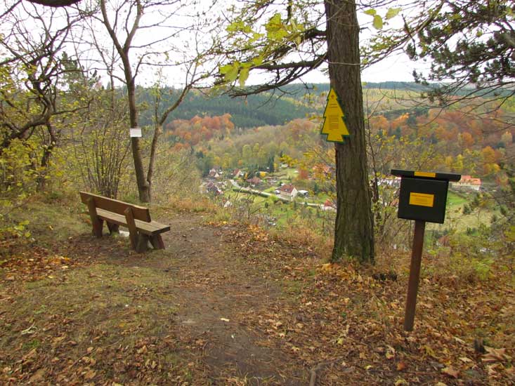 Stien op til Schornsteinberg starter til venstre for Baumannshöhle-hulen og fører opad i et par hårnålesving til en eng. Stien fortsætter langs skovkanten til udsigtspunktet.