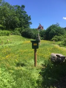 Diesen Stempel erreichen Sie, wenn Sie von der Rückseite der Villa in den linken Weg einbiegen, dort sehen Sie nach 50 mtr. den Stempelkasten.