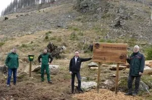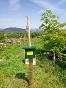 Anlässlich des 10-jährigen Jubiläums des Naturerbewaldes in Blankenburg (Harz) hat die Stiftung Umwelt, Natur- und Klimaschutz des Landes Sachsen-Anhalt, die Harzer Wandernadel Gmbh und die Stadt Blankenburg (Harz) am 5.Juni 2021 diese Sonderstelle aufgestellt.
