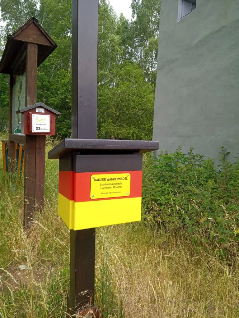 Die Stempelstelle Grenzturm Rhoden befindet sich im Kleinen Fallstein – einem Naturschutzgebiet in der Einheitsgemeinde Osterwieck. Die innerdeutsche Grenze hat die Landschaft verändert. Südwestlich der Ortschaft Rhoden wurde im Jahr 1975 ein Grenzturm errichtet., dieser steht noch gleicher Stelle und erinnert an die Teilung Deutschlands.