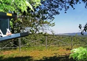 Vom Campingplatz in Schierke geht rechts ein kleiner Pfad vorbei am Hotel „Brockenblick“ und dann links hoch zum Aussichtspunkt Helenenruh, wo sich in der Schutzhütte die Stempelstelle befindet.