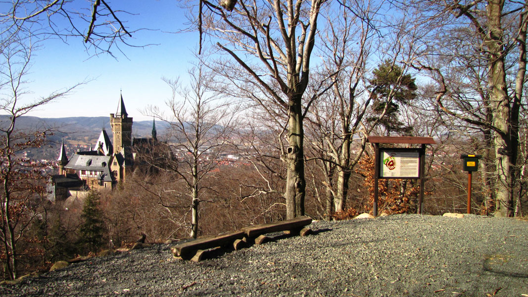 Vom Wernigeröder Schloss aus kann man über den Amalienweg den Agnesberg besteigen und die Wanderung zum Gasthaus Christianental HWN 32 fortsetzen.